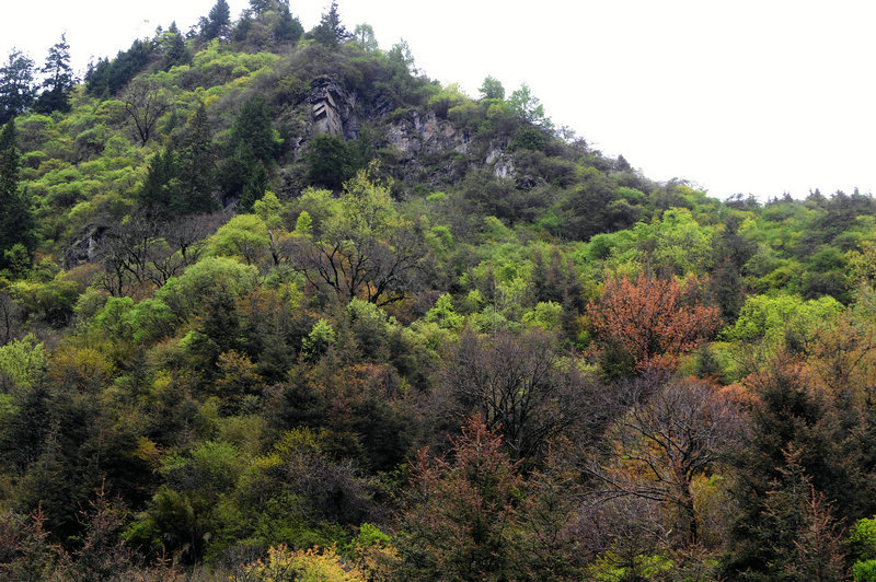 在平地,五月的绿早已流淌成一首诗,而五月的高原还不到漫山开满野花的季节,毕棚沟里还能看到季节的交融,春花、夏绿、秋黄、冬雪都能神奇呈现。