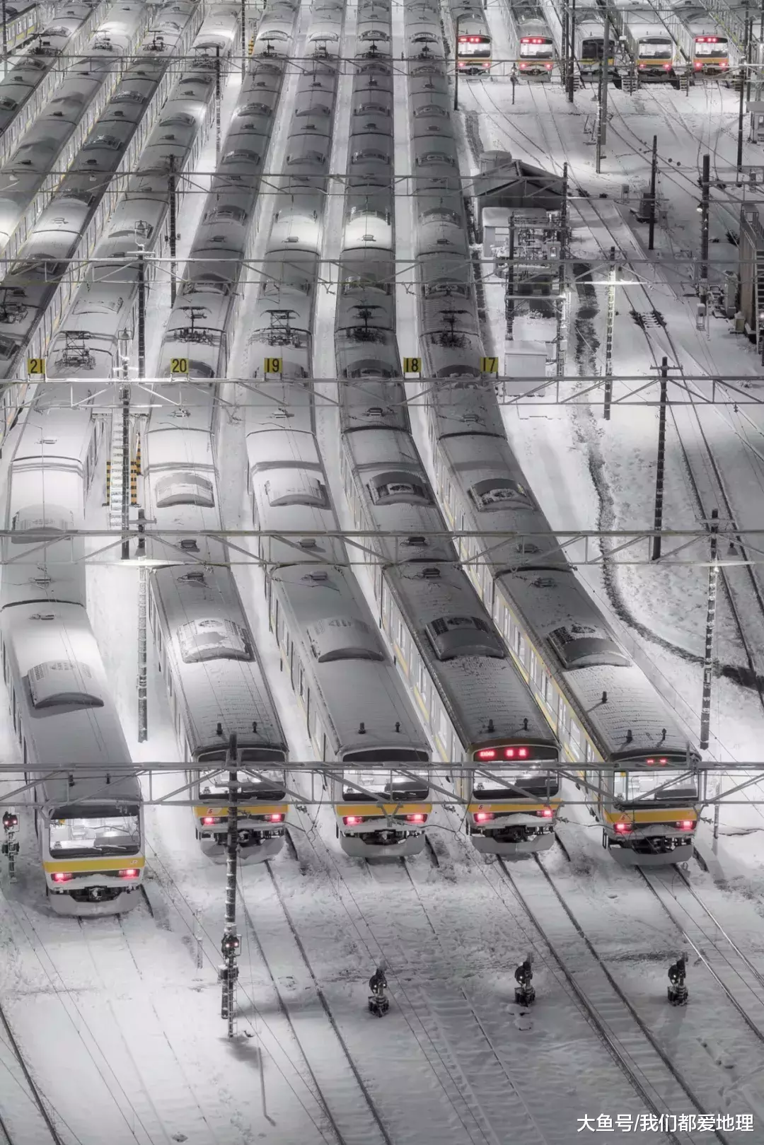 车站深夜都是暗色调,然而这一天, 却是美丽的银色世界