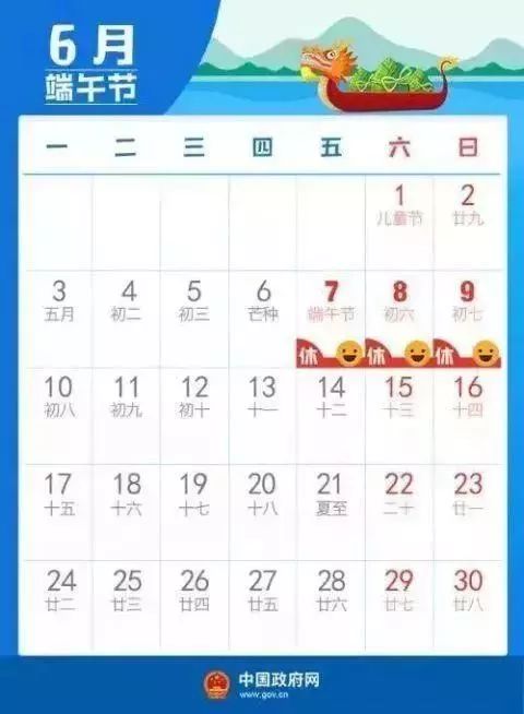根据国务院办公厅通知精神 现将2019年端午节 放假安排如下: 6月7日(星期五)放假调休, 与周末连休。 ▼