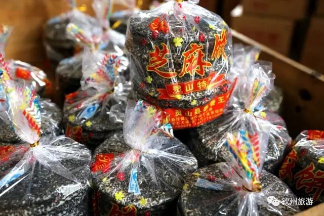 芝麻饼是灵山很有名的小吃,馅厚皮薄,馅鲜细腻,入口即化,皮酥清脆,营养丰富,也是用来招待客人的好茶点!记得小时候我们在家里烤火,经常拿芝麻饼放在火盆边烤,特别香!