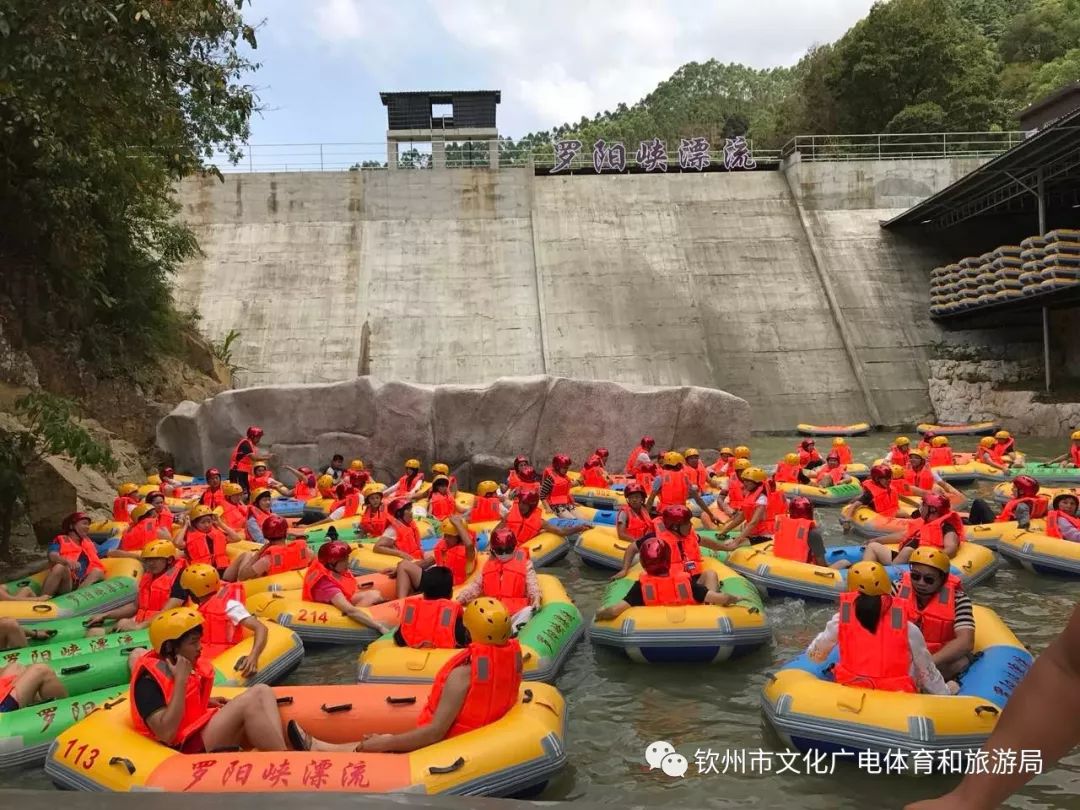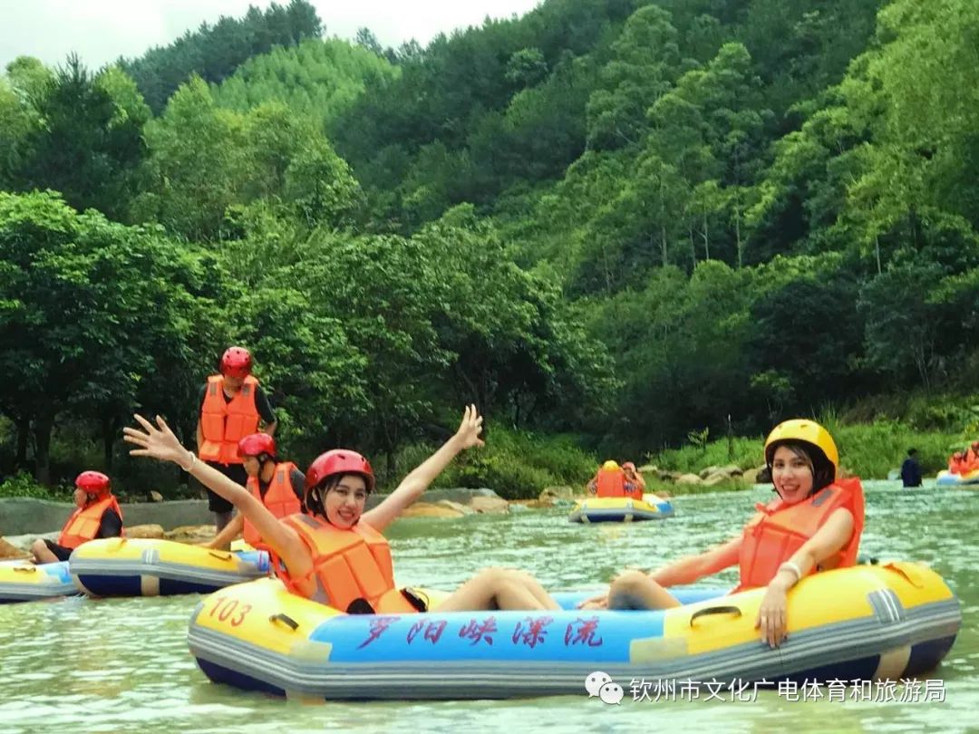 罗阳峡漂流距离灵山县城19公里,郁郁葱葱的大山,蕴藏着无穷无尽的水源,可谓人杰地灵。罗阳峡漂流集大山之水,全程6.6公里,用时大约1.5小时,海拔落差210米,是广西河道长、落差大的自然生态漂流之一。