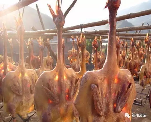 “腊鸭”也是灵山比较出名的腊味之一,最出名的要数丰塘镇的,为什么那里做的腊鸭腊味那么浓?有人说是因为丰塘那边是最北边,北风从这里经过温度较低,所以做出来的腊鸭又香又好吃!