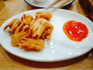 酥酥脆脆的小云吞,在吃过冰凉的甜品之后,还挺适合来一口哒,搭配着酸甜的酱料既不显得油腻,也不会让人觉得粗糙