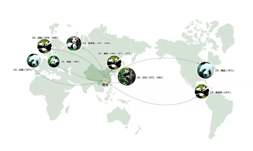 雅安大熊猫“国礼”数量18只,占出国熊猫的2/3以上,全国第一,是大熊猫主要输出地,有“雅安熊猫走天下”之说。