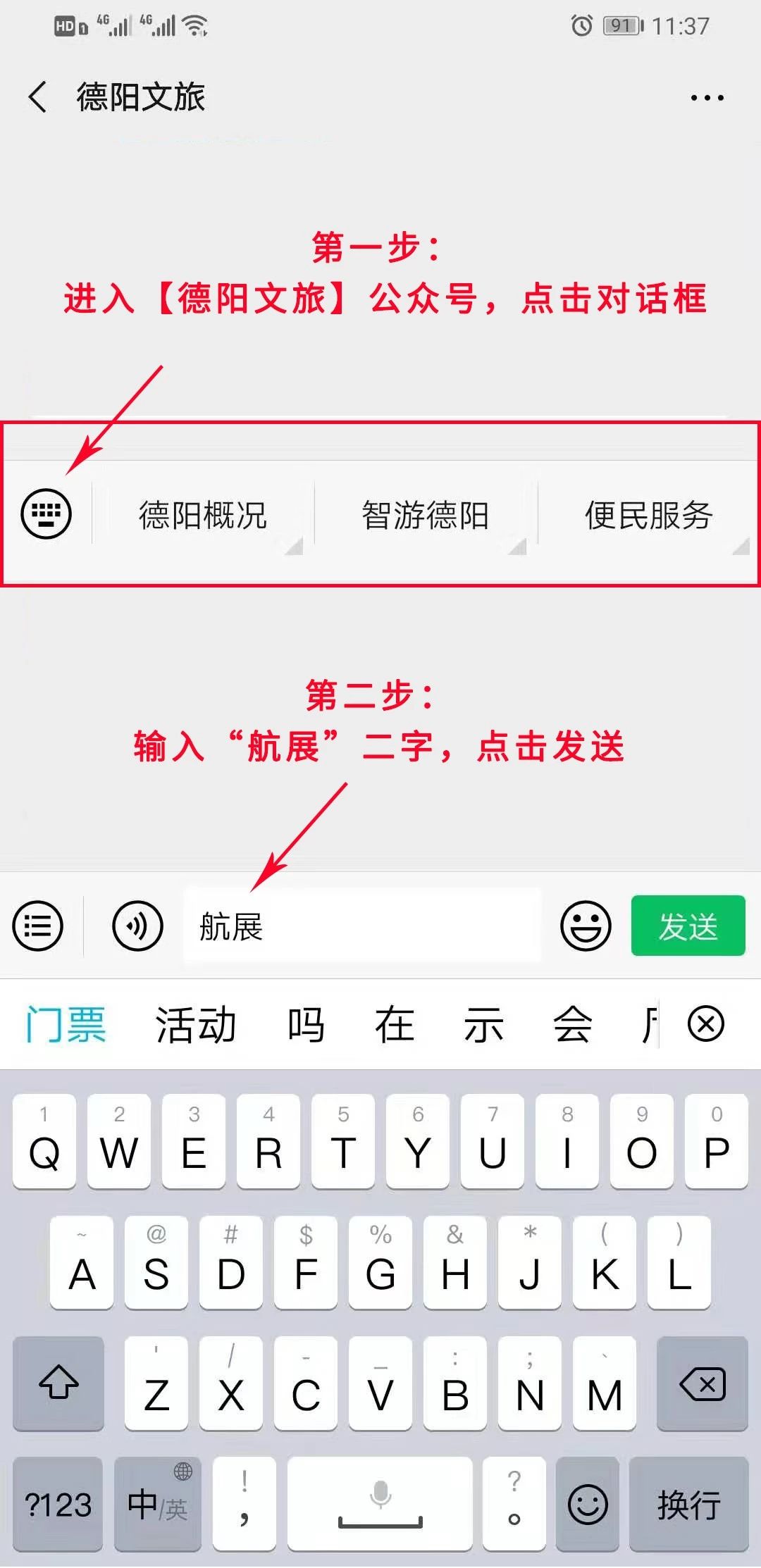 进入【德阳文旅】公众号,在对话框回复“航展”。