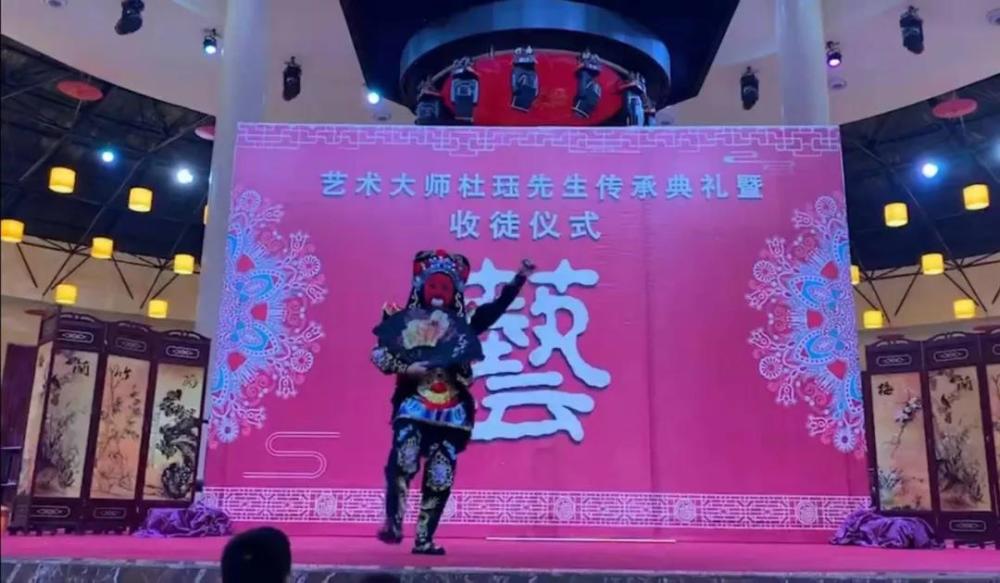 13号当天,大梁喜堂格外热闹,在阵阵川剧锣鼓声中拉开了本次拜师仪式,杜珏老师新收的徒弟均是演艺界臻臻日上的新秀:张林、付进川、张晨。在简短而庄重的仪式上,杜珏带着新收的徒弟们郑重地向舞台上的“艺”字致敬,并用心良苦地给徒弟送上了芹菜和大葱,他指出,巴蜀文明是中华文化的重要组成,巴蜀演艺是群众喜闻乐见的巴蜀文化,他希望徒弟们勤勤恳恳学艺,清清白白做人,不断提高演艺水平,创作更多以人民为中心,无愧于时代的文艺作品,为弘扬优秀传统文化作出应有的贡献。