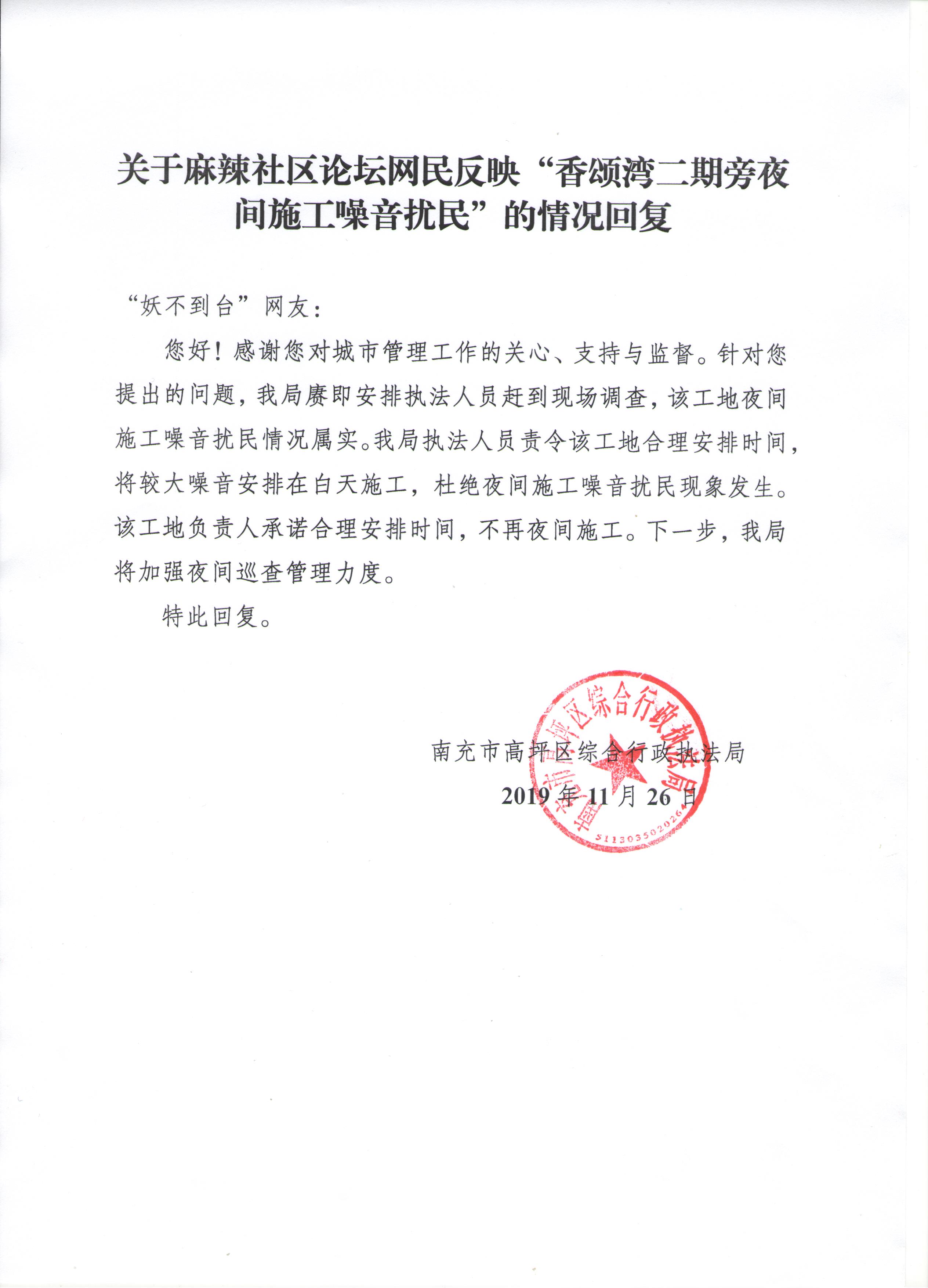 [呼声回应] 深夜施工扰民真的好吗[已回复] |