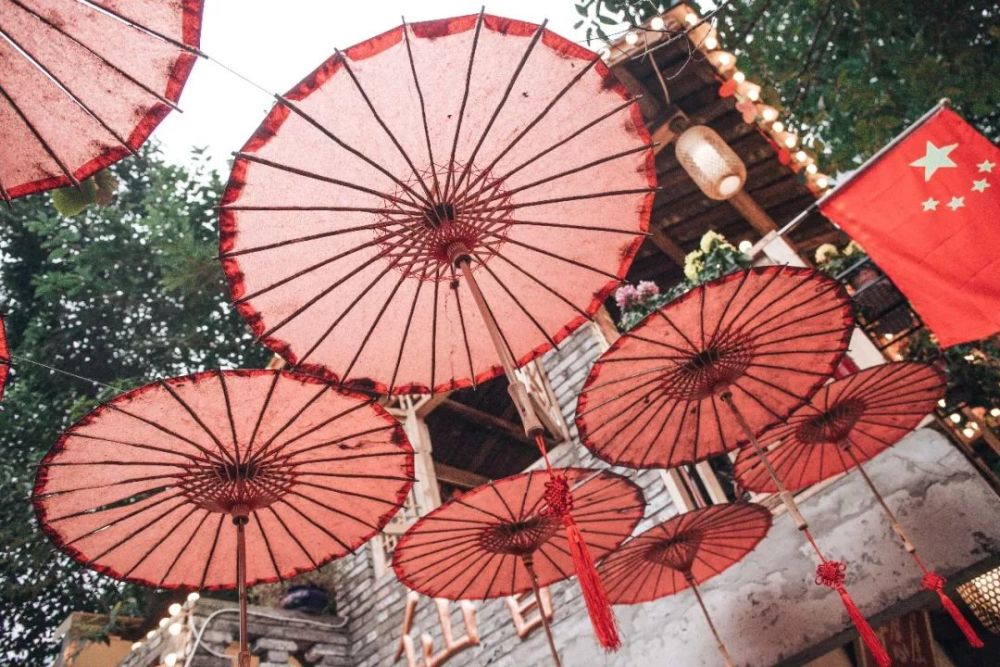 头顶的油纸伞,预示着让人在伞下卸下浮躁,感受院内的静谧与闲适。