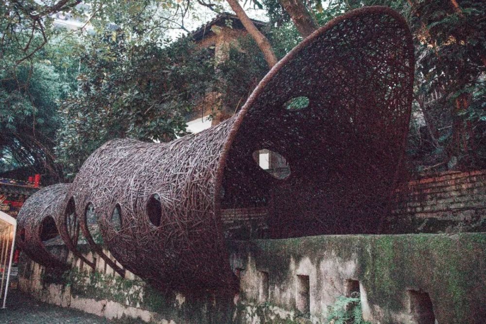 顺着梯坎往里走,还会发现玻璃栈道、上了年岁的老亭子、竹篾编织的廊道...到处都能感受到文化的沉淀和艺术的熏陶。