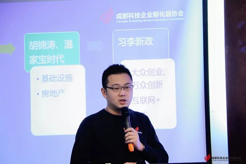 成都科技企业孵化器协会秘书长胡胜全从“双创”时代背景出发,给大家带来了“创业孵化人员‘五力’提升”的内容分享。