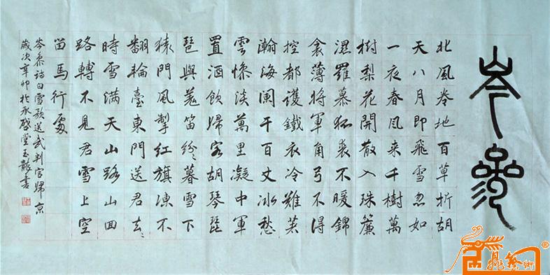 这首诗,以奇丽多变的雪景,纵横矫健的笔力,开阖自如的结构,抑扬顿挫的韵律,准确、鲜明、生动地制造出奇中有丽、丽中奇的美好意境,不仅写得声色宜,张弛有致,而且刚柔相间,急缓相济,是一首不可多得的边塞佳作。全诗不断变换着白雪画面,化景为情,慷慨悲壮,浑然雄劲。抒发了诗人对友人的依依惜别之情和因友人返京而产生的惆怅之情。▲