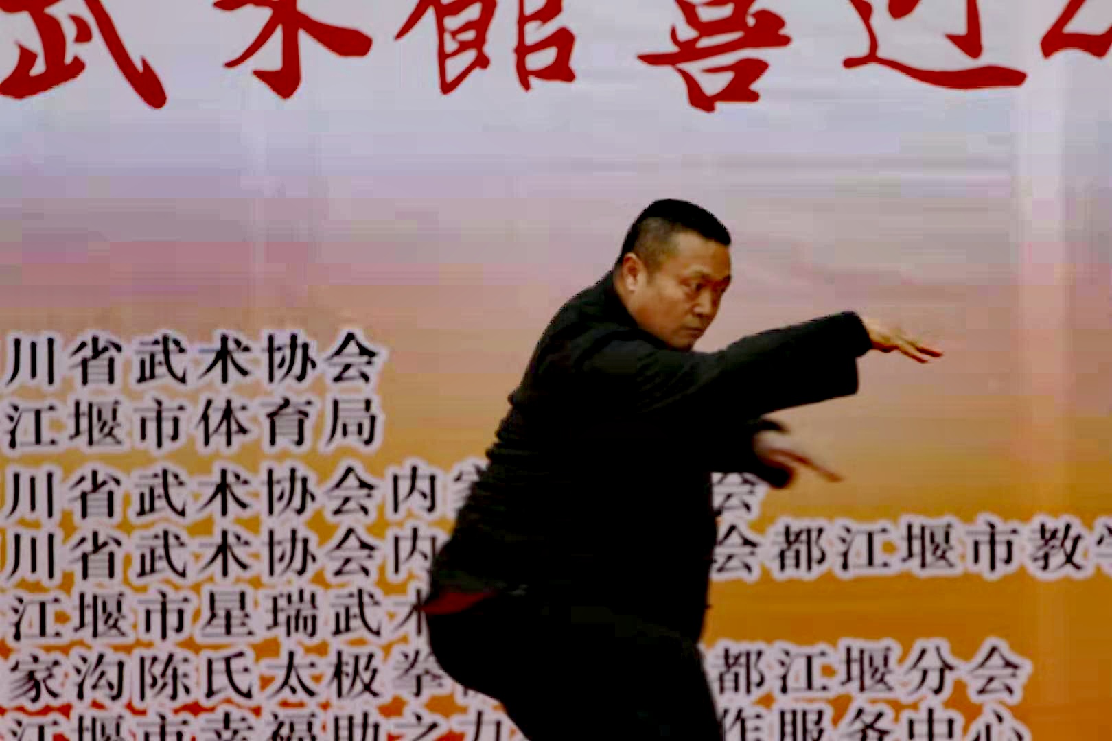 陈家沟陈氏太拳总会四川都江堰分会会长蒋新兰(女士)、世界陈小旺太极拳总会四川都江堰分会会长、都江堰市星瑞武术馆馆长乔卫星(先生)也上台亲自为分会成立的辅导站和推广中心共八个太极拳单位进行了授牌授证; 在这盛大的武林大会上,也彰显着我们中华民族文化。 书法与武术有着共同的感人之处,有着共同的文化内涵; 四川省武术协会武术产业委员会主席,四川省武术协会内家拳联合会秘书长邹樑正先生和青城画派创始人,冰神李茂槐为大会赠送墨宝。之后,在大会中又隆重的举行了“陈氏太极拳第十二代传承人乔卫星先生收徒仪式”; 仪式上乔卫星先生训诫弟子们一定要尊师重道、团结师门、继续努力,刻苦学习、提高拳艺,将中华传统武术文化——太极文化更好地推广和传播。