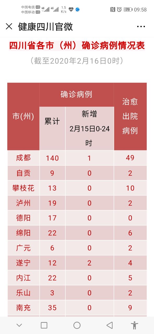 》》健康四川官微丨截至2月16日0时