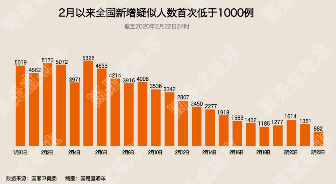 当日,全国31省区市新增死亡病例97例(湖北96例,广东1例),新增疑似病例882例。这是2月以来全国新增疑似人数首次低于1000例。