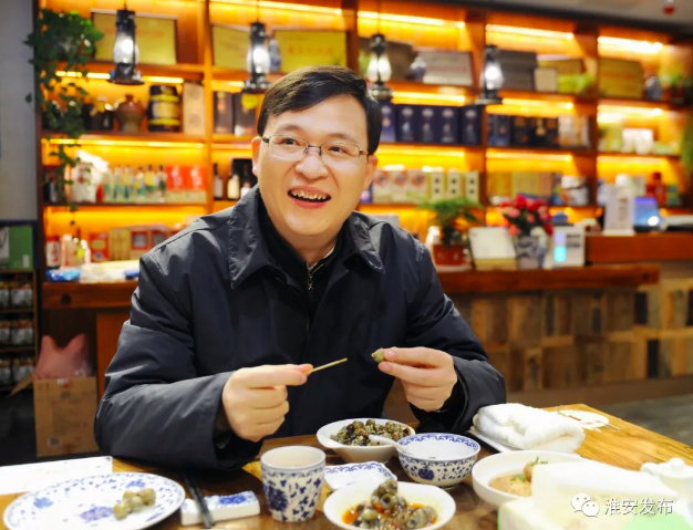 这天,在淮安市区交通路上的浦楼面馆,市委书记蔡丽新点了份淮安特色小吃——长鱼面,她边吃边夸,“真好吃!”