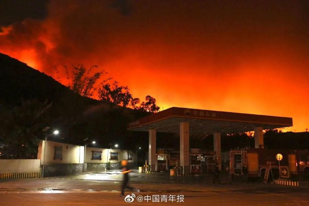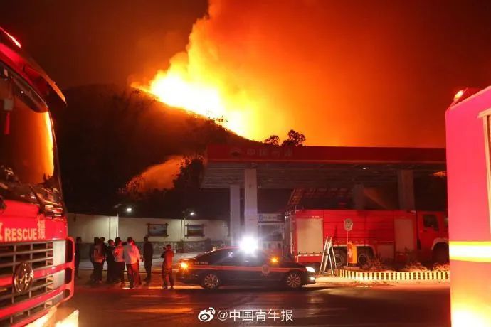 据@中国青年报,1日晚23时左右,记者在四川西昌市经久乡森林火灾现场看到,泸山的山火面积继续扩大,火苗正在翻越山头,向泸山东麓蔓延。而泸山东麓的道路交叉口附近,有一家中国石油加油站,与山顶火场直线距离仅一两百米。为保护加油站安全,现场紧急调配多台消防水炮车喷水,为加油站及附近山林加湿。四川消防自贡支队等消防力量紧急驰援,其中自贡消防支队共有7台消防车约50人已到达现场。