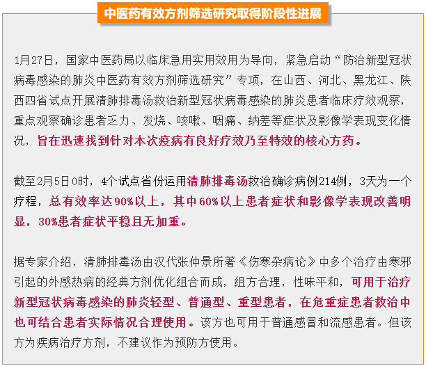 所谓“三药三方”,是指目前已通过实验数据和临床效果,而筛选出有效中成药和方剂。
