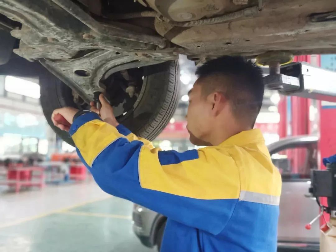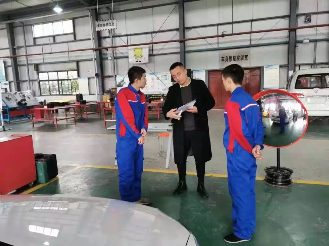 细心是车身喷漆时学生专注的眼神