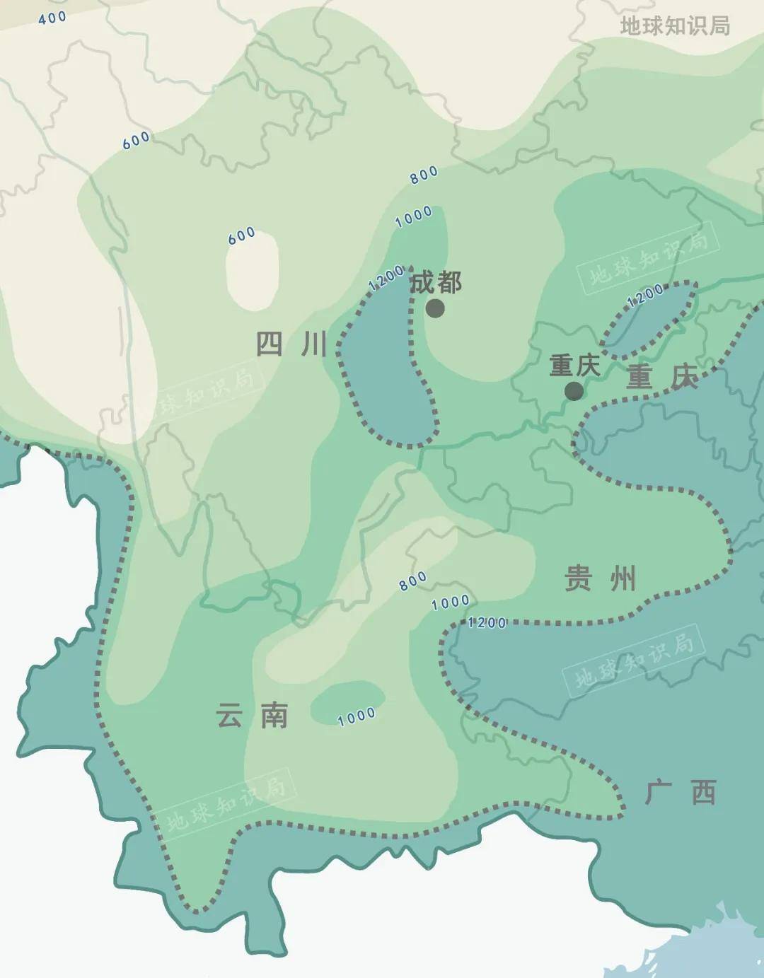 巨大的海拔使降水集中在成都平原及以南地区▼