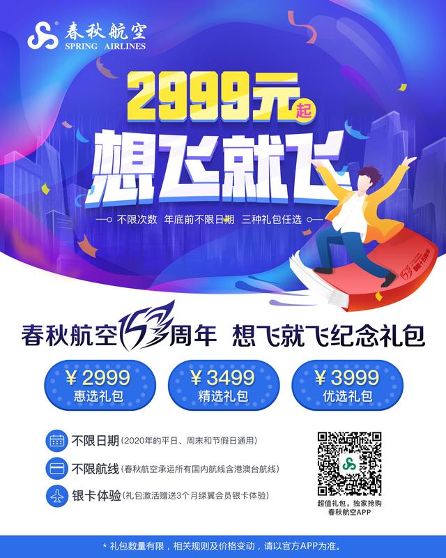 2999元起,想飞就飞春秋航空将发售首飞15周年纪念礼包 |