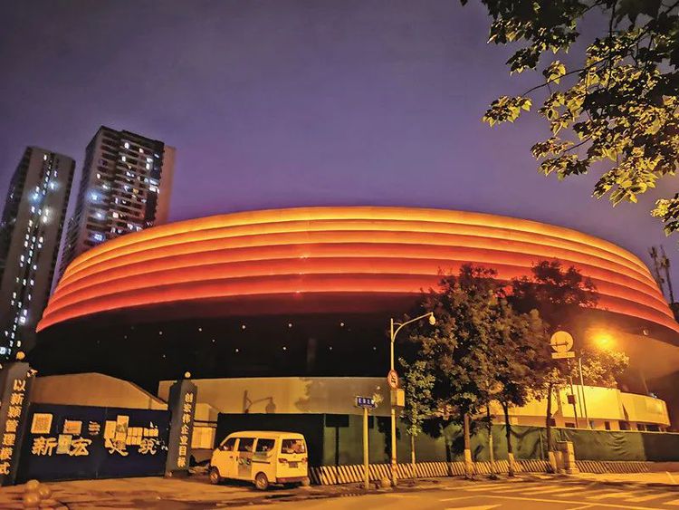 目前该项目外部形态效果已完全呈现 体育馆顶部如彩虹环绕 白天在阳光照射下层层渐变 夜晚“彩虹”的光亮照亮夜空 已成为了全新的城市体育地标