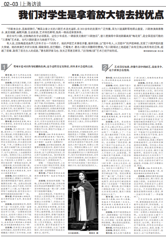 青年报:会不会期望在川剧界提起沈铁梅,就像京剧界提起梅兰芳。