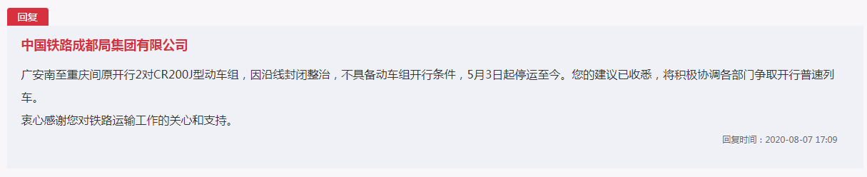 正直向上 发表于 2020-8-12 19:24 给你说了襄渝线的问题,你去查下达州到重庆和广安到重庆看下。这次调图巴中计划3对重庆3对成都(全上联络 ...