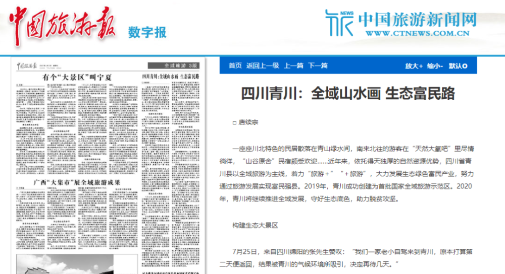 中国旅游报点赞四川青川:全域山水画 生态富民路