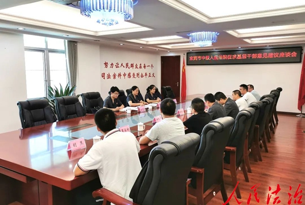人民法治网讯(通讯员 李玲 贾应军)在全国政法队伍教育整顿试点工作进入查纠问题环节后,四川省宜宾市中级人民法院广辟线索渠道,深入基层听取和收集意见建议。近日,宜宾中院征求意见建议工作组的同志来到屏山县,以“法院开放日、作风大评议”为主题召开座谈会。基层政府、法院及人民法庭工作人员、村社干部、群众代表参加座谈。