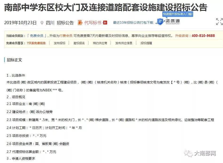 据悉,2019年10月23日网络已经公布招标信息“南部中学东区校大门及连接道路配套设施建设招标公告”:南部中学东区将新建高19.5米、宽30米的校大门,长258.24米的入校人行梯步道路,长680米的入校车行道路和120米的校内道路改造及相关绿化、边坡整治等配套工程。整个项目预计12月开工,总投资9660万元。