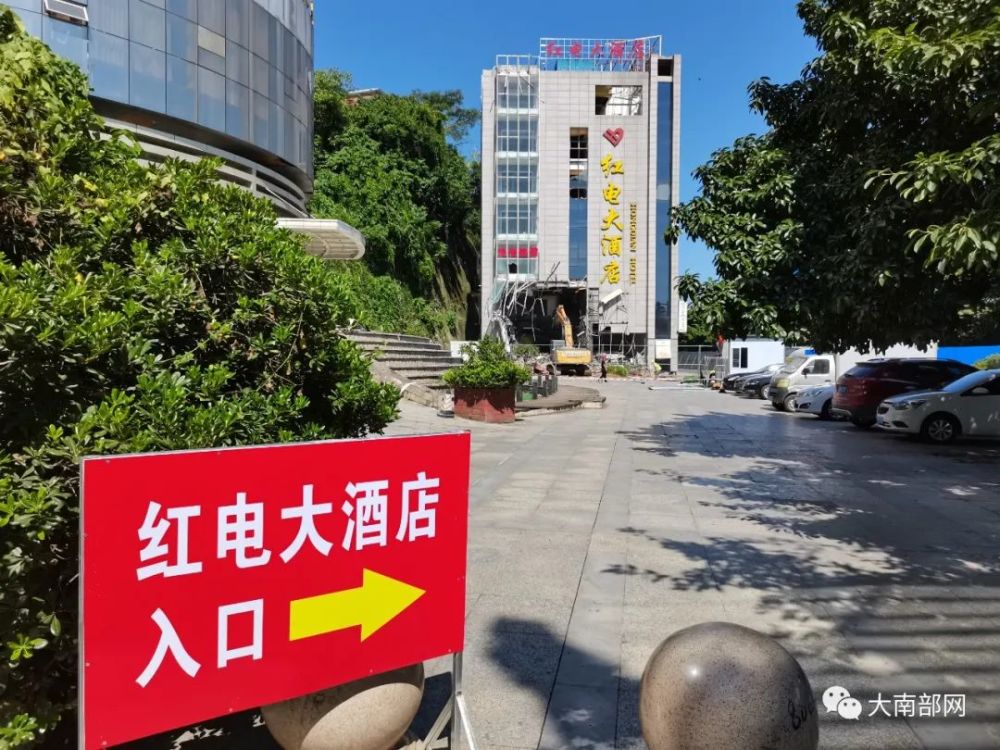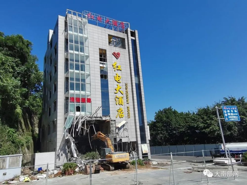 由于近年来南部中学学生出行十分不便,经县政府相关人员商议征收北环路(前烧烤摊)至红岩子电站红电大酒店(望月楼)附近土地用于建设南部中学东大门。2020年9月6日,南部县红电大酒店(望月楼)正式被拆。