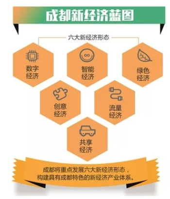 成都基于自身经济发展的基础,聚焦新经济,大力发展新经济。2019年以来,成都共签约引进新经济500强企业48家,计划总投资154.9亿元,新增新经济企业8万多家,独角兽企业6家。
