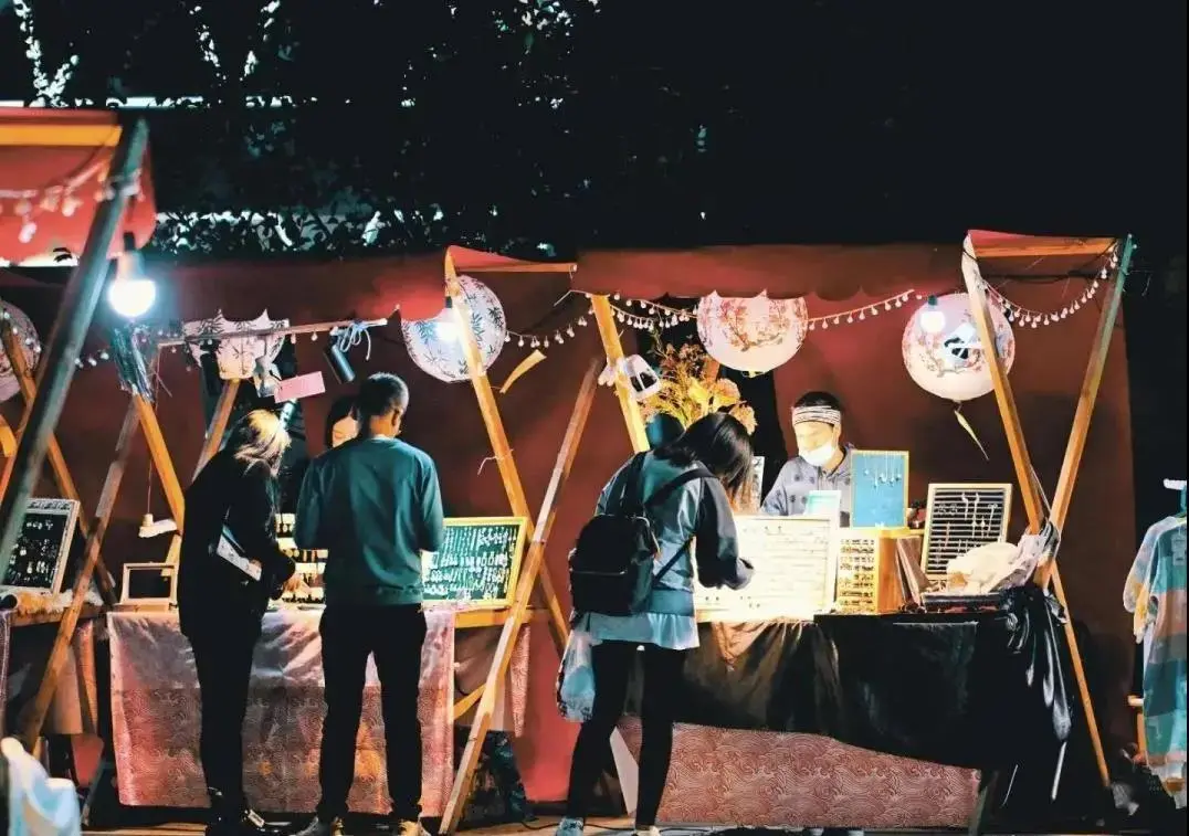 在大悦城,大悦青年共享集市今夏开市,五彩的灯光将文创小摊上物品最美的样子呈现给大家,行人们驻足摊前,挑选着自己喜爱的小饰品,为成都大悦城带来了奇妙的新鲜感,在夜市里也能看到城市实实在在的烟火与活力。