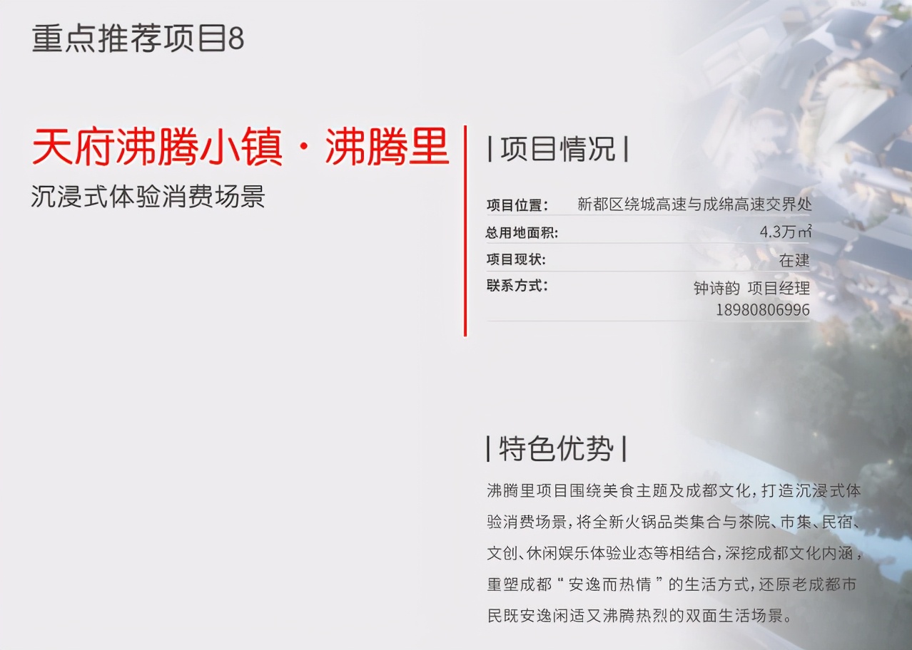 同时重点推出国内首个超线性空中立体公园、沉浸式体验消费场景—天府沸腾小镇·沸腾里项目等消费新场景。