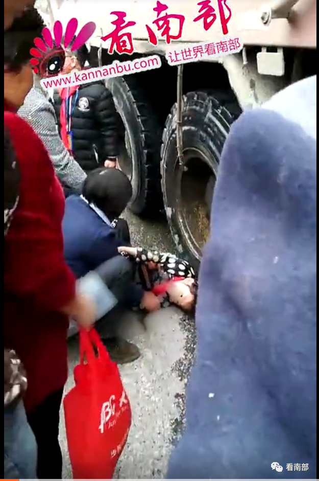 2019年3月27日,中午2点左右,正值上学时间,在翔合绿洲大门口的马路上,一小女孩在从斑马线穿过马路时,被经过的大货车撞到,并卷到车轮下,万幸的是只有头发被车轮压住。