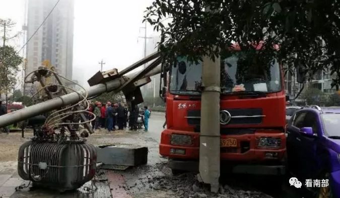 2016年一辆大货车刚好在这个位置撞断电杆,导致变压器受损,周围大面积停电。
