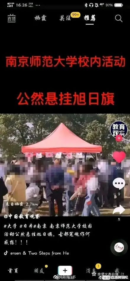 当如此卑劣无耻令国人愤怒的事迹败露,而南京师范大学的回应是挂旗的学生不知道这是日本军旗而将之误以为日本国旗!