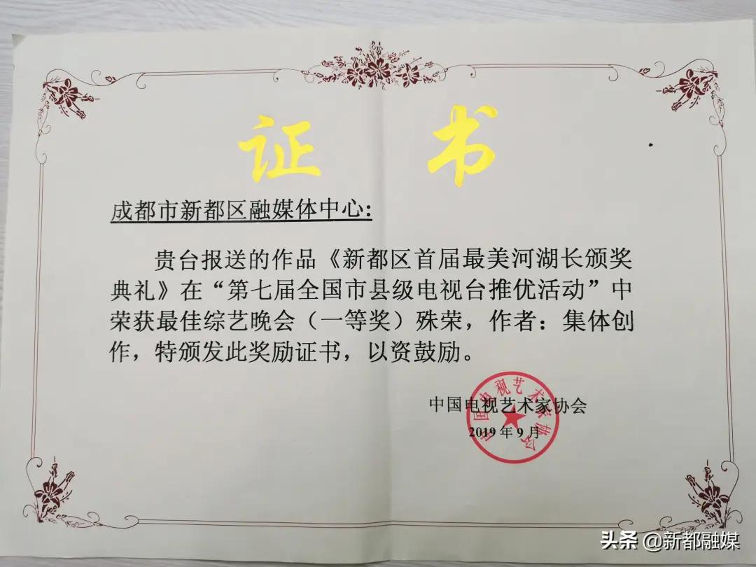 新都区融媒体中心选送的综艺晚会《新都区首届最美河湖长颁奖典礼》、电视栏目《农事天地》、短视频《不负年轻×蔡飞》均荣获一等奖。