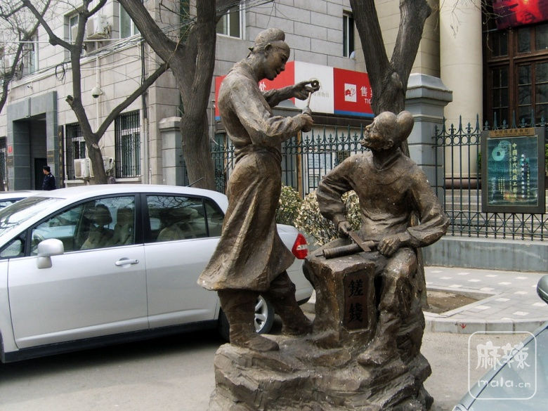 我翻看相册,看到前几年我到北京西交民巷办点事,路过了中国钱币博物馆。因有事没进去看看,只是照了几张像,其中门口的铜铸的字我都不认识。现在中国钱币博物馆门口因路面拓宽,这座铜铸雕塑不知放到什么地方去了。