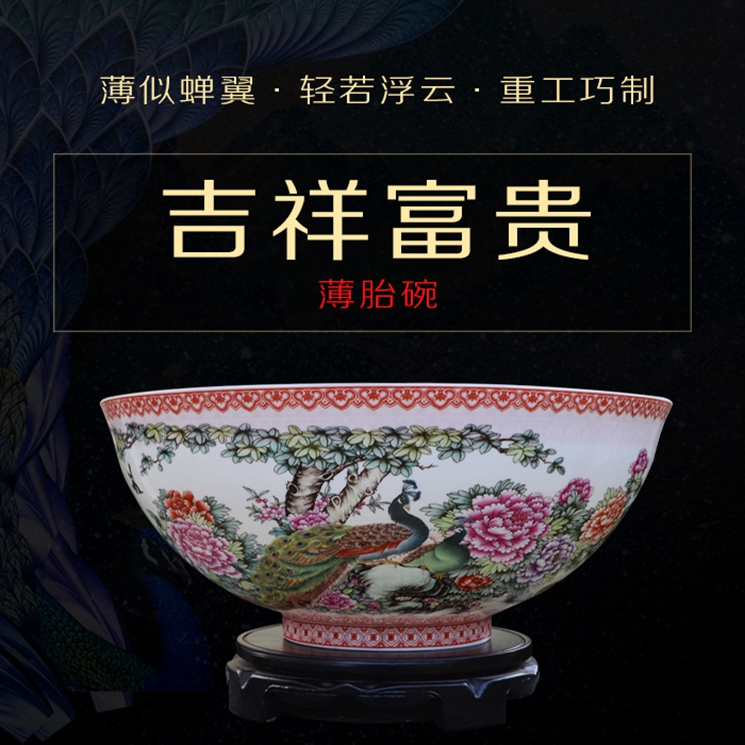 吉祥富贵薄胎碗粉彩工艺徐杰高丽清双大师作品