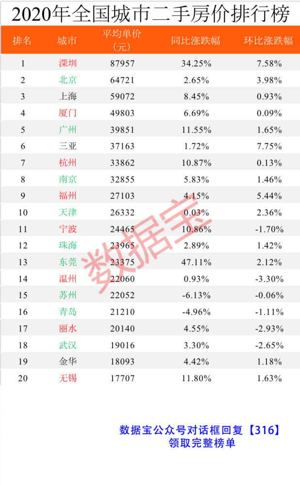 [即时新闻] 2020年全国二手房价排行榜:深圳房价最高 |