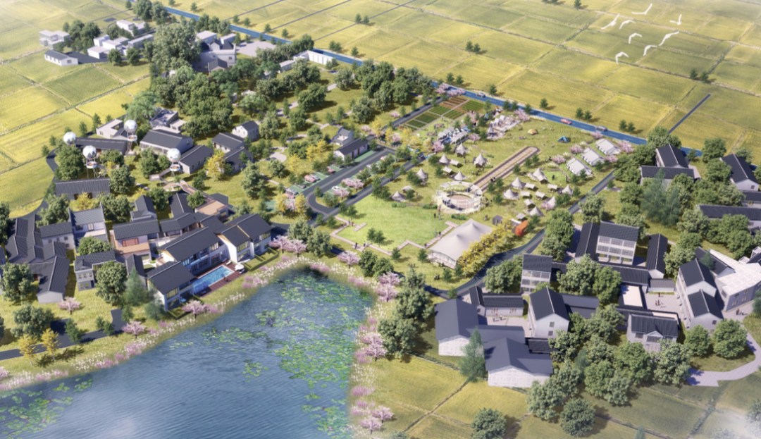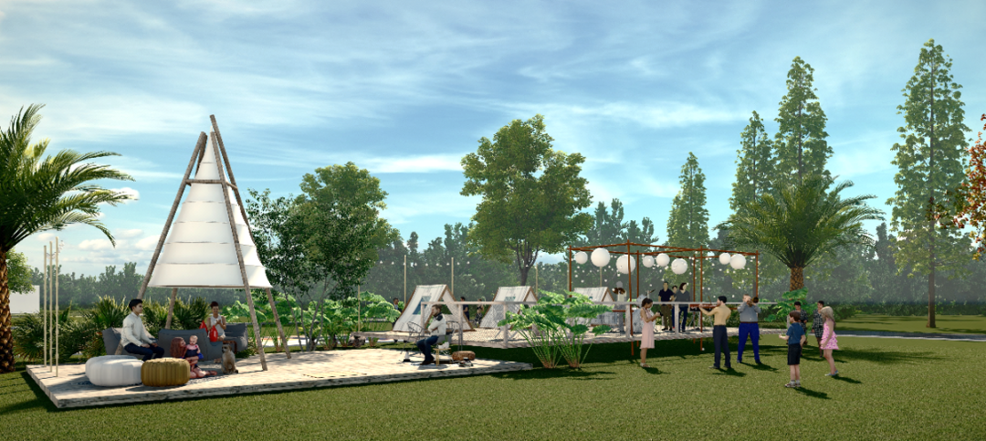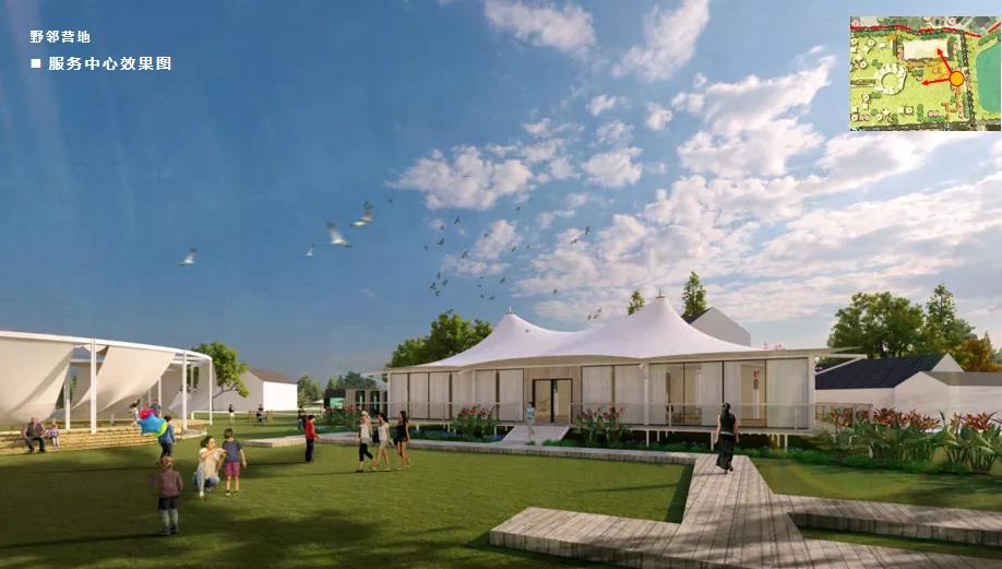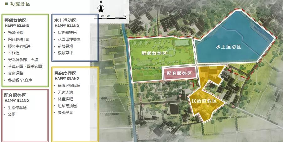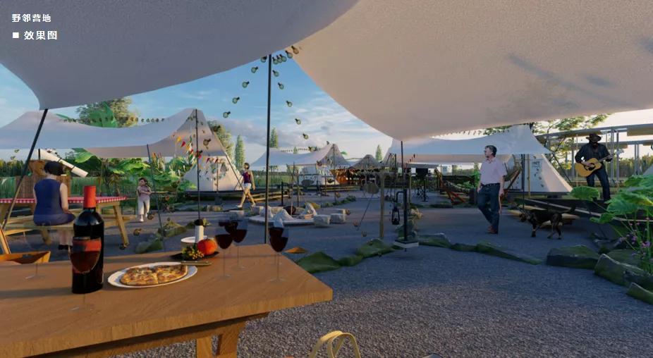 乡村理想体验区林盘营地体验区总体分为野邻营地区水上运动区、民宿度假区、配套服务区