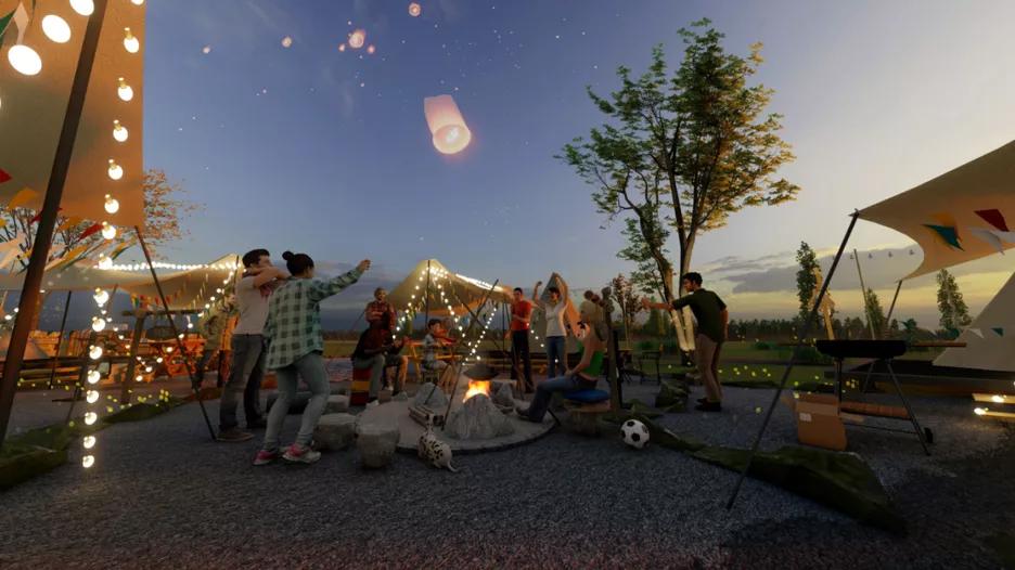 移动餐车、林盘酒吧、20亩水上乐园……