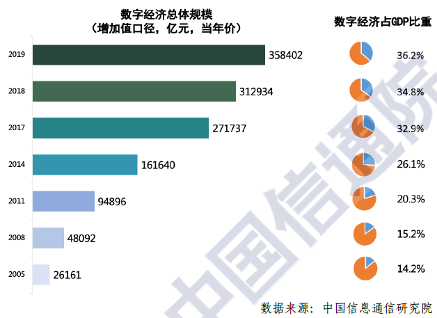 我国数字经济增加值及占比 图表来源:《中国数字经济发展白皮书(2020)》