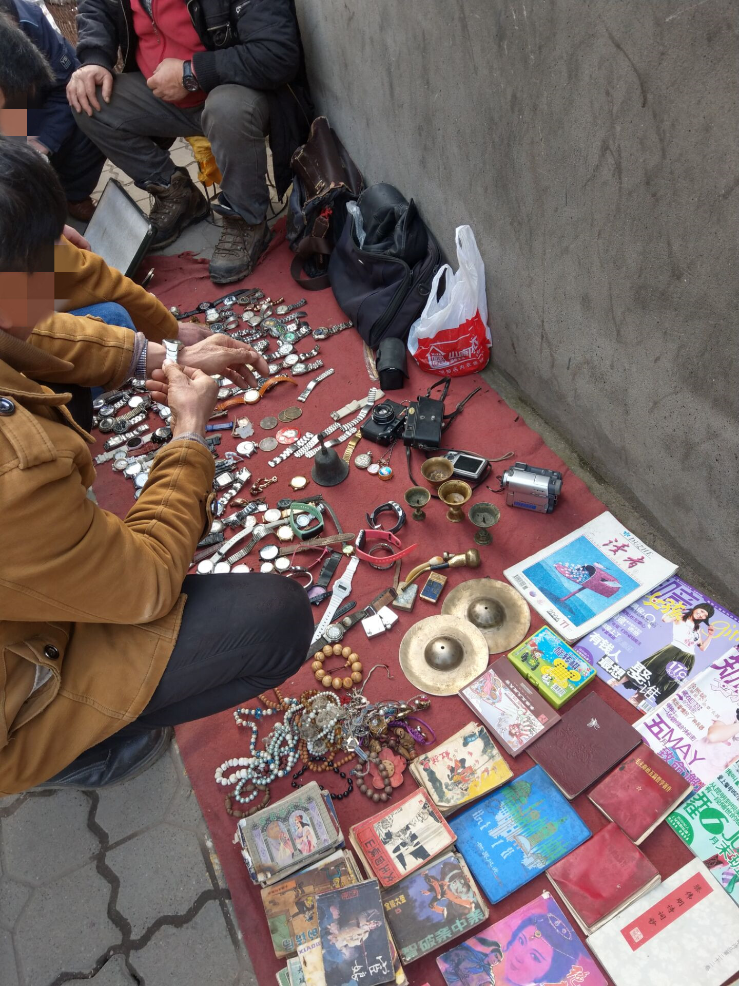 南充;这些售卖旧货的摊子有点热闹,吸引了不少路人围聚“淘宝” |
