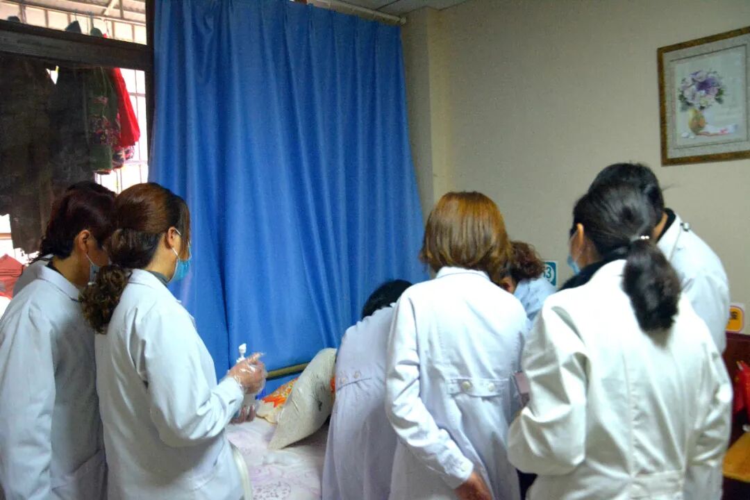 南充市中心医院专家耐心地给天乐谷阳光康养家园工作人员指导、讲解针对园区老人的疾病护理、用药建议等。