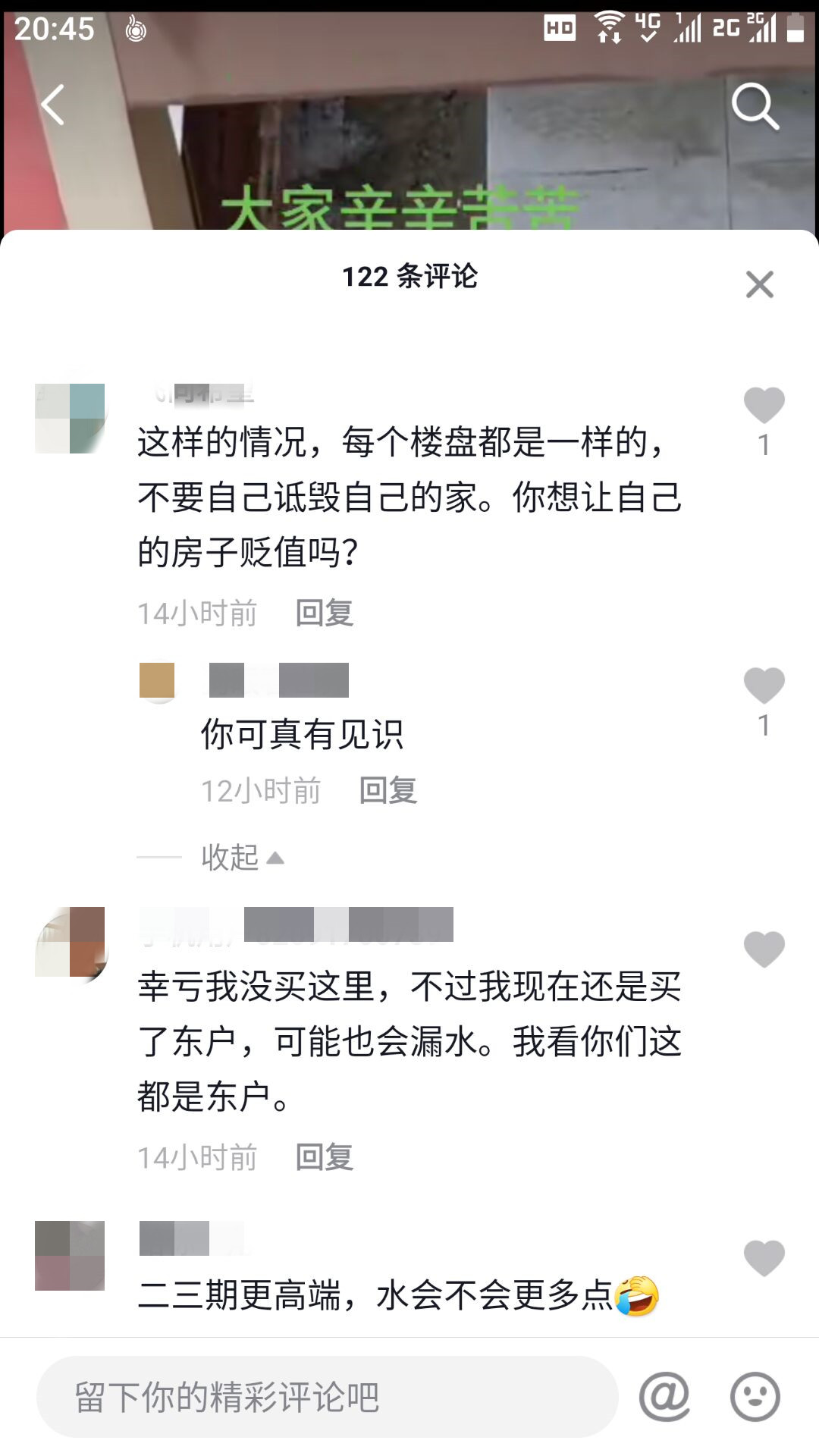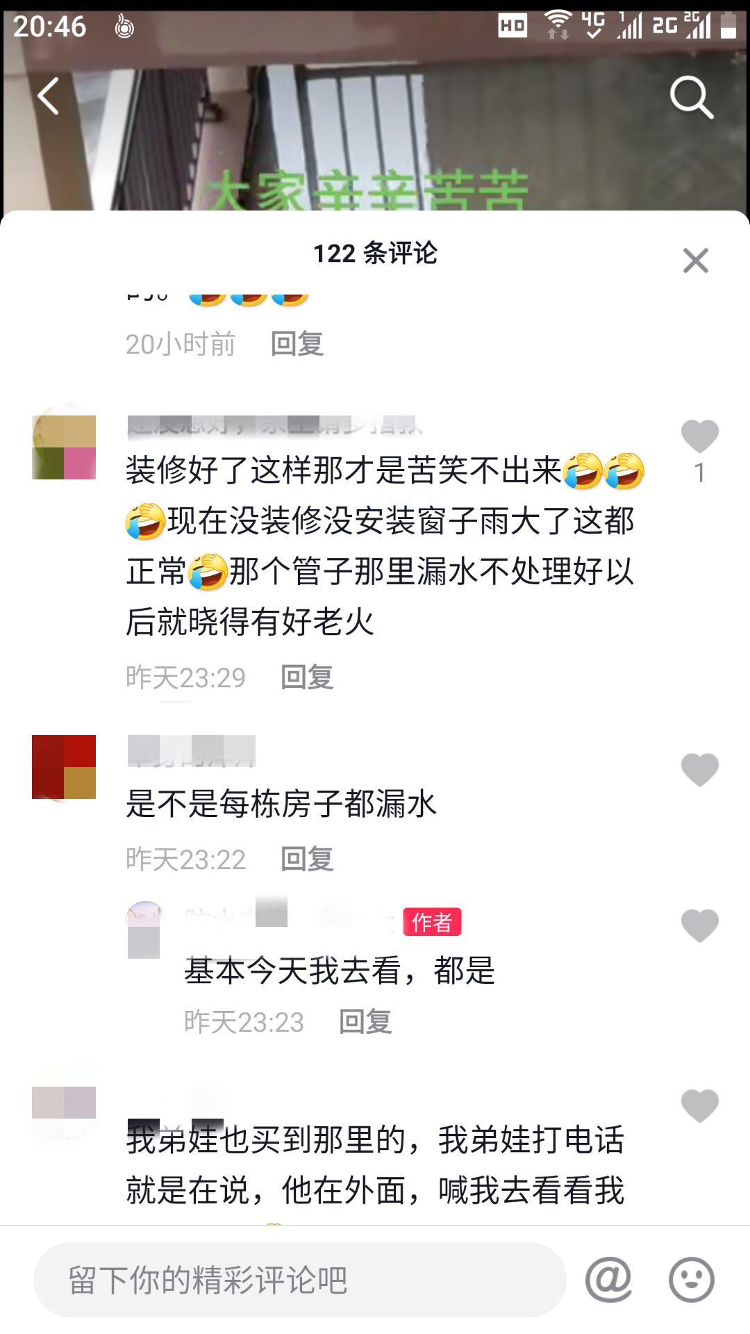 个人觉得升斗市民买房真不易,在这物价高企的世代,或者辛苦打工十几年才能存出首付款子,做为开发公司,还是应认真对待建房这件事情了,至少别让购房人产生不舒适的心情了