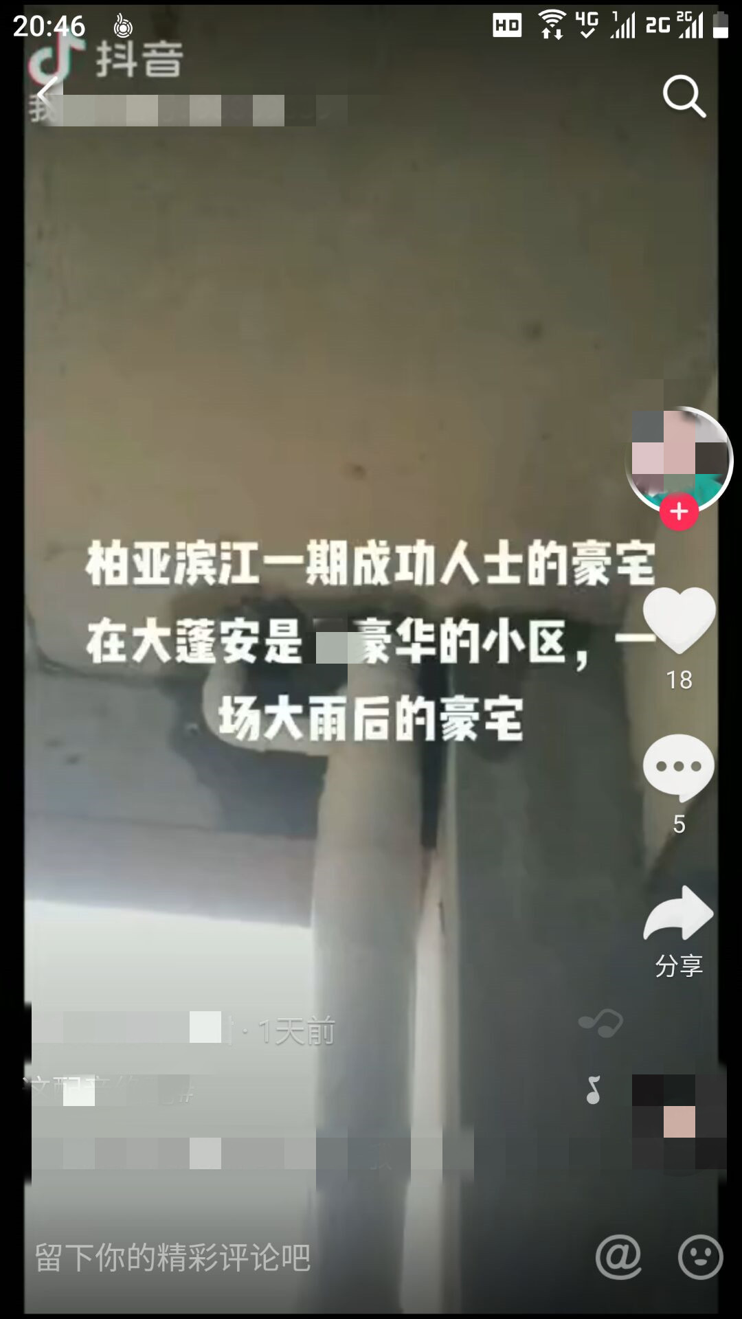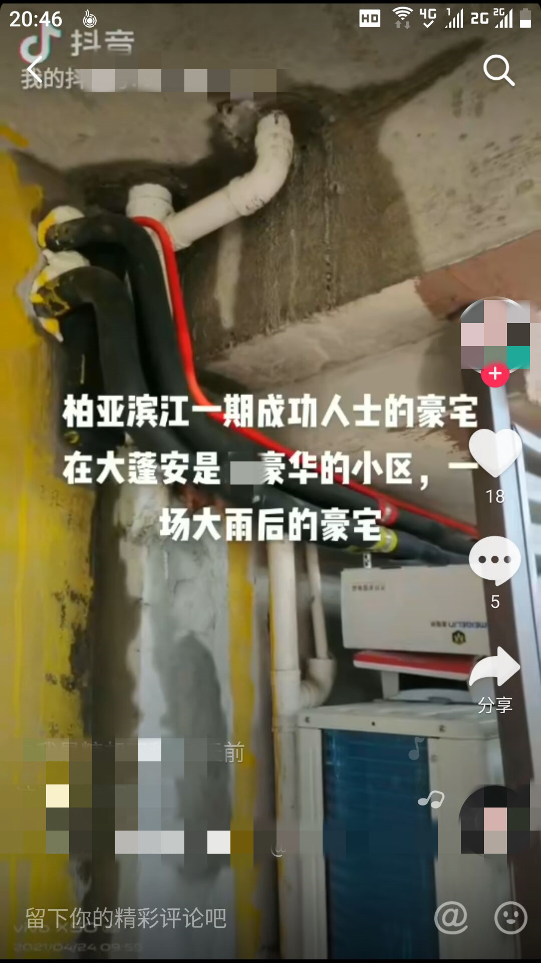 刷抖音,看到有多位网友发视频表示,一场大雨过后,柏亚滨江城楼盘居然有部分房屋出现了疑似漏水现象!感叹当初花几十万血汗钱,买的号称为高端的房子,竟是如此高端!面对此情此景,开发商及承建公司,能给出个稍微合理的解释吗?