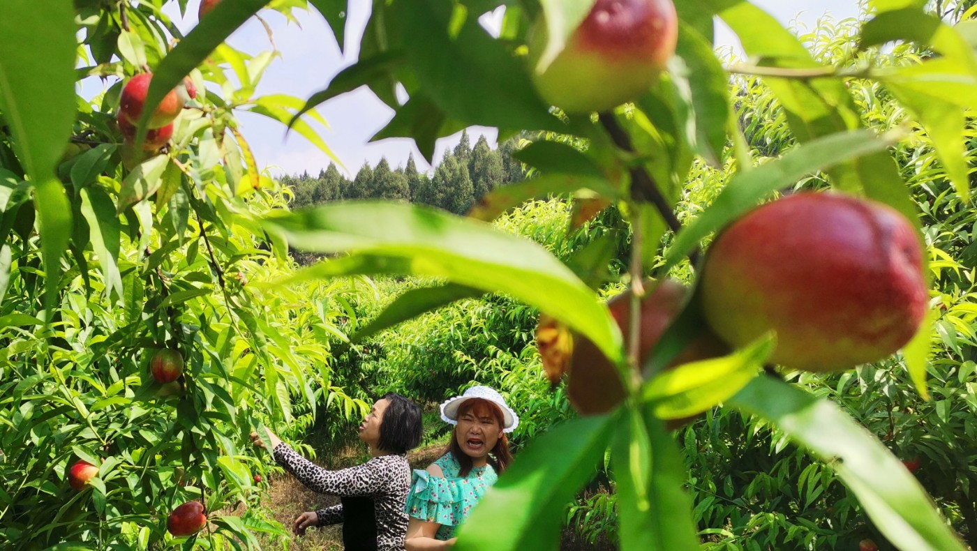 5月10日,在果园内,不少游人亲手入园采摘,现在正是油桃成熟的季节,密密麻麻的油桃树上结满了果实,阵阵桃香扑鼻而来,沉甸甸的半红半绿的油桃让人垂涎欲滴。油桃口感甜脆爽口、香味浓郁,田园采摘成了乡村一道靓丽的风景。