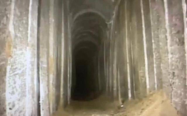 ↑以色列国防军公布的从加沙地带挖到以色列南部的一条隧道。图据央视新闻